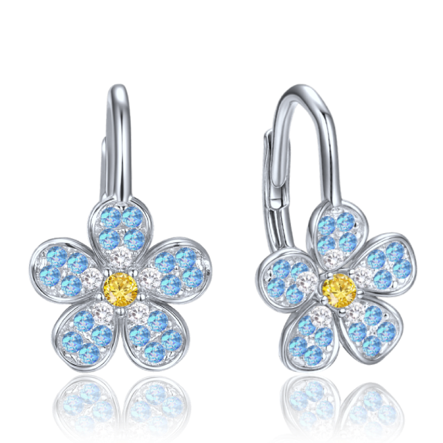 MINET Dětské stříbrné náušnice kytička s modrými, bílými a žlutými zirkony