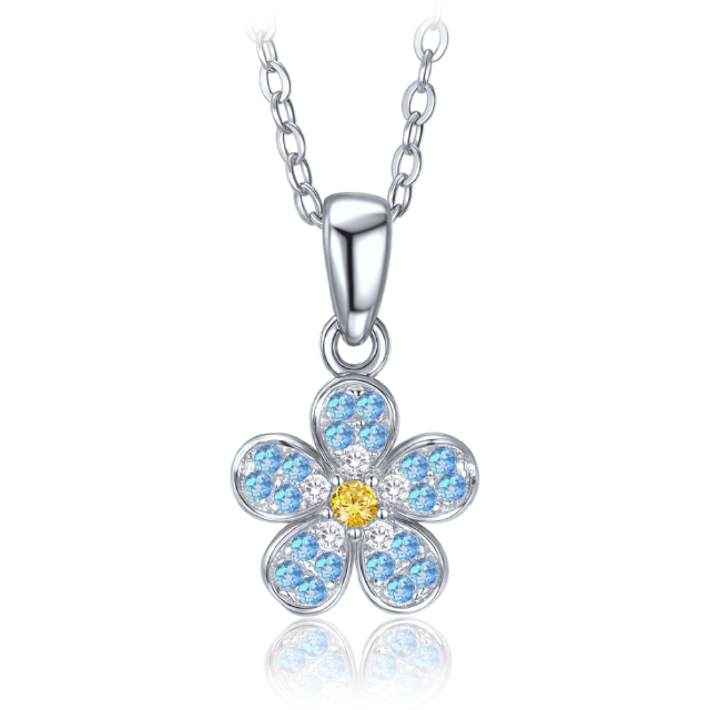 MINET Dětský stříbrný náhrdelník kytička s modrým, bílým a žlutým zirkonem