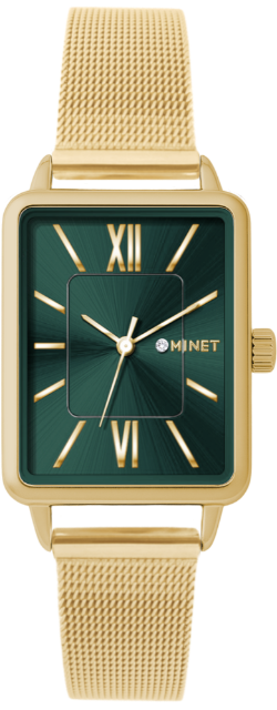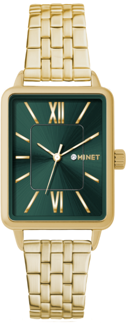 MINET Zlato-zelené dámské hodinky SIENA se zlatým ocelovým řemínkem