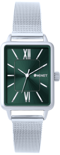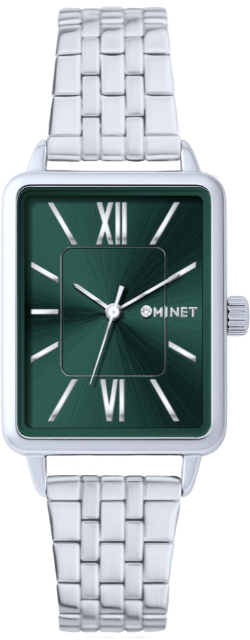 MINET Stříbrno-zelené dámské hodinky SIENA se stříbrným ocelovým řemínkem