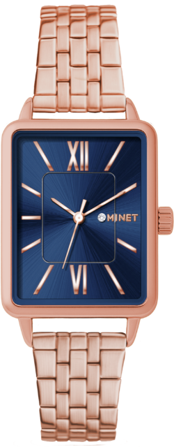 MINET Rosegold-modré dámské hodinky SIENA se rosegold ocelovým řemínkem