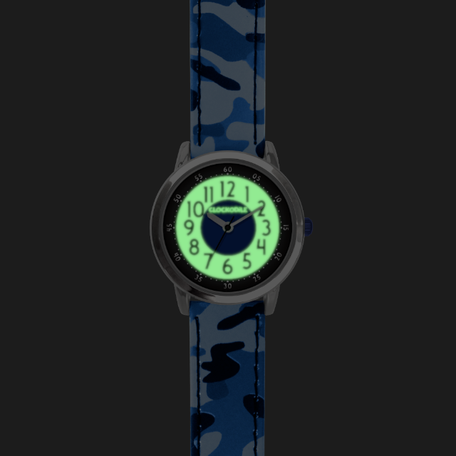 CLOCKODILE Svítící modré chlapecké dětské hodinky ARMY s maskáčovým vzorem