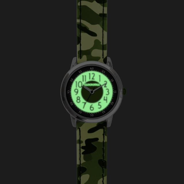 CLOCKODILE Svítící zelené chlapecké dětské hodinky ARMY s maskáčovým vzorem