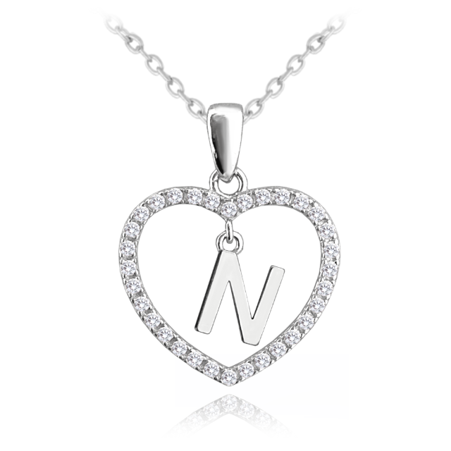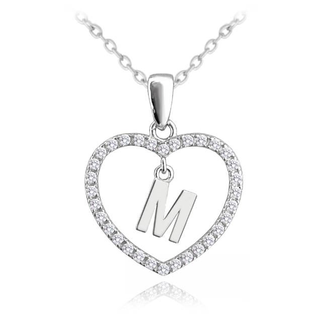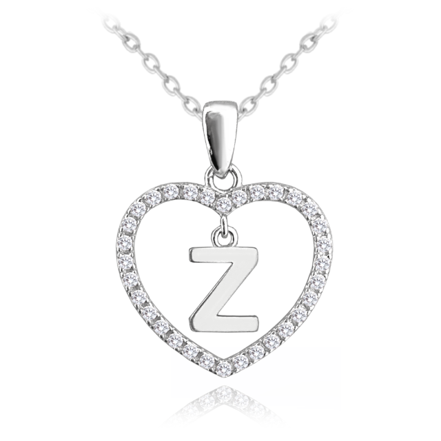 MINET Stříbrný náhrdelník písmeno v srdíčku "Z" se zirkony