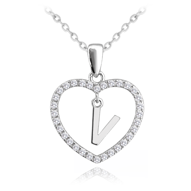 MINET Stříbrný náhrdelník písmeno v srdíčku "W" se zirkony