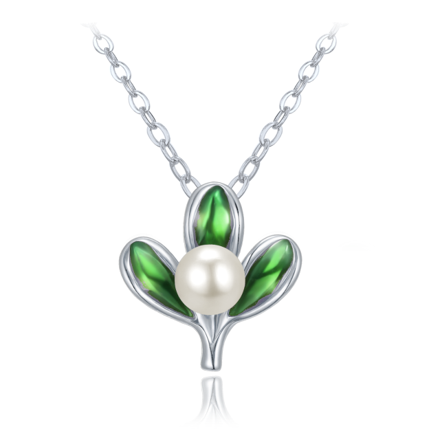 MINET Vánoční stříbrný náhrdelník jmelí s perlami