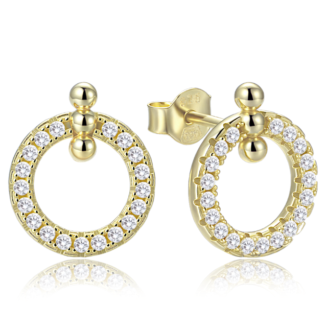 MINET Elegantní zlaté náušnice kolečka na šroubek s bílými zirkony Au 585/1000 1,60g