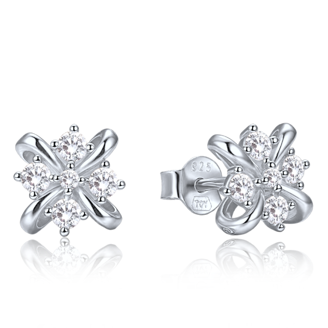 MINET Elegantní zlaté náušnice z bílého zlata s bílými zirkony Au 585/1000 1,80g