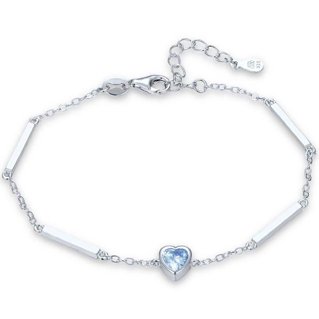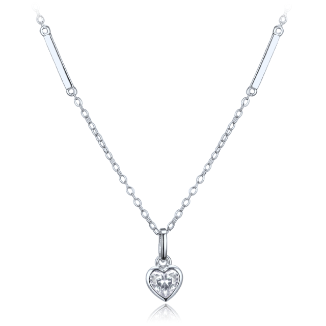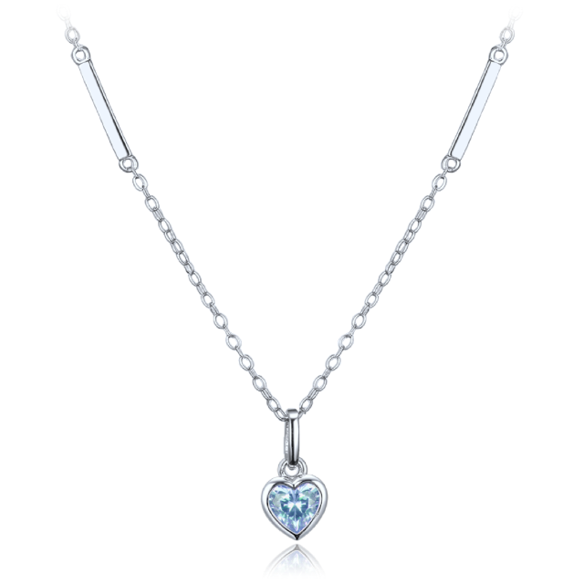 MINET Decentní stříbrný náhrdelník srdce se světle modrým zirkonem