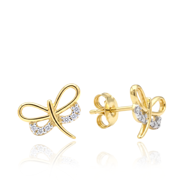 MINET Elegantní pozlacené stříbrné náušnice s bílými zirkony