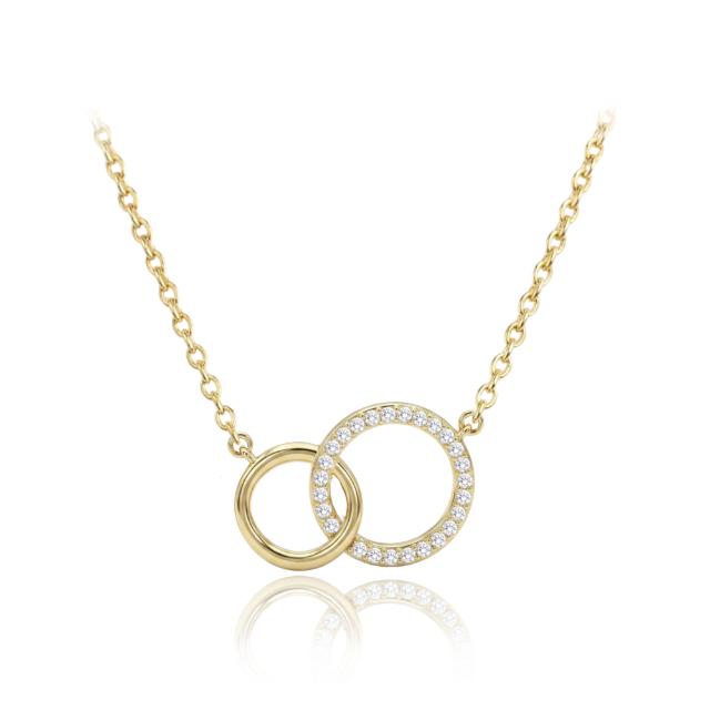 MINET Elegantní dvojitý pozlacený stříbrný náhrdelník s bílým zirkonem