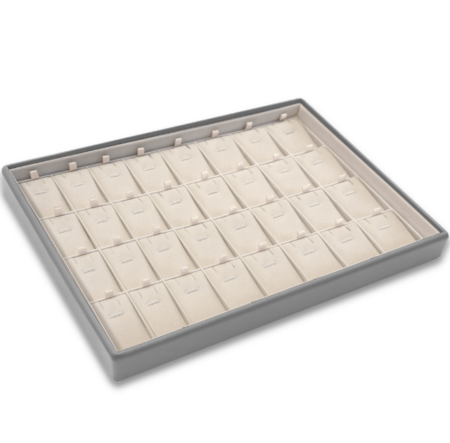 MINET Šedé prezentační plato na šperky - 28 x přívěsy / řetízky s přívěskem - 31,5 x 22,5 cm