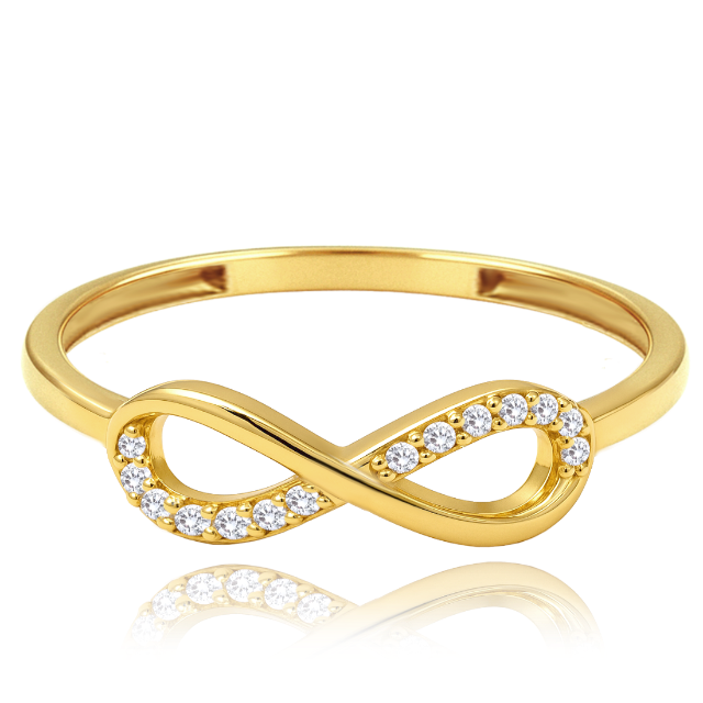 MINET Elegantní zlatý prsten nekonečno s bílými zirkony Au 585/1000 vel. 61 - 0,90g