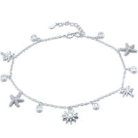 MINET Stříbrný řetízek na kotník s hvězdicemi, palmami, sluncem a bílými zirkony
