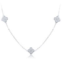 MINET Stříbrný náhrdelník čtyřlístky s bílými zirkony