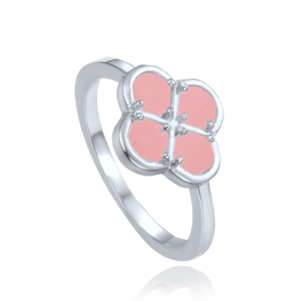MINET Stříbrný prsten čtyřlístek s růžovým jadeitem vel. 52