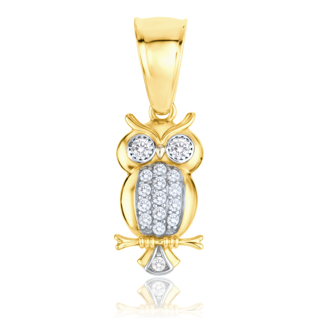 MINET Zlatý přívěs sova s bílými zirkony Au 585/1000 1,35g