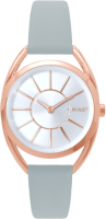 MINET Rose gold dámské hodinky ICON PINK se šedým koženým řemínkem