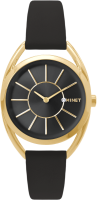 MINET Černo-zlaté dámské hodinky ICON BLACK s černým koženým řemínkem