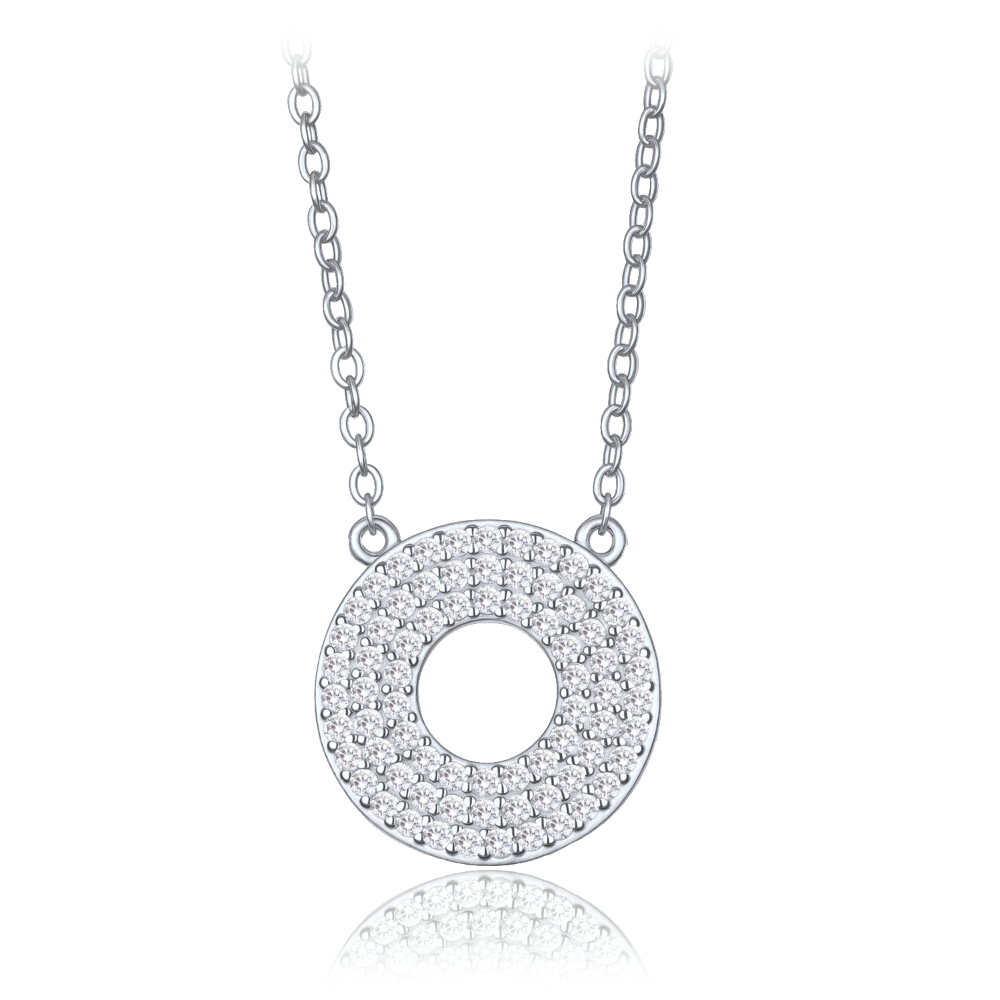 MINET Luxusní stříbrný náhrdelník kroužek s bílými zirkony