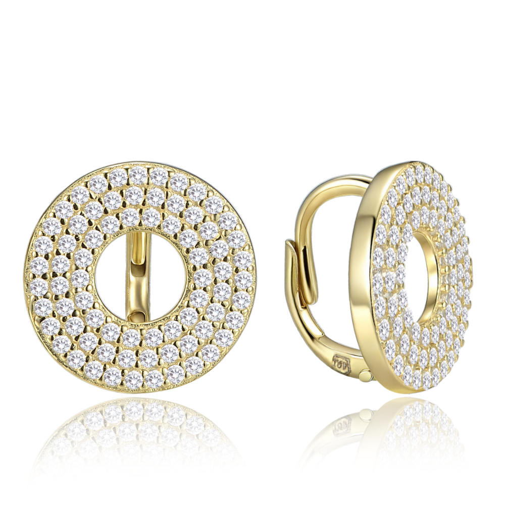 MINET Luxusní pozlacené kruhové stříbrné náušnice s bílými zirkony