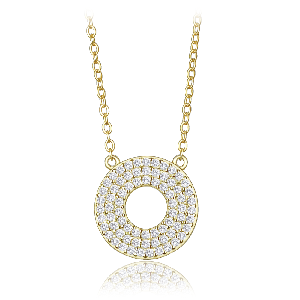 MINET Luxusní pozlacený stříbrný náhrdelník kroužek s bílými zirkony