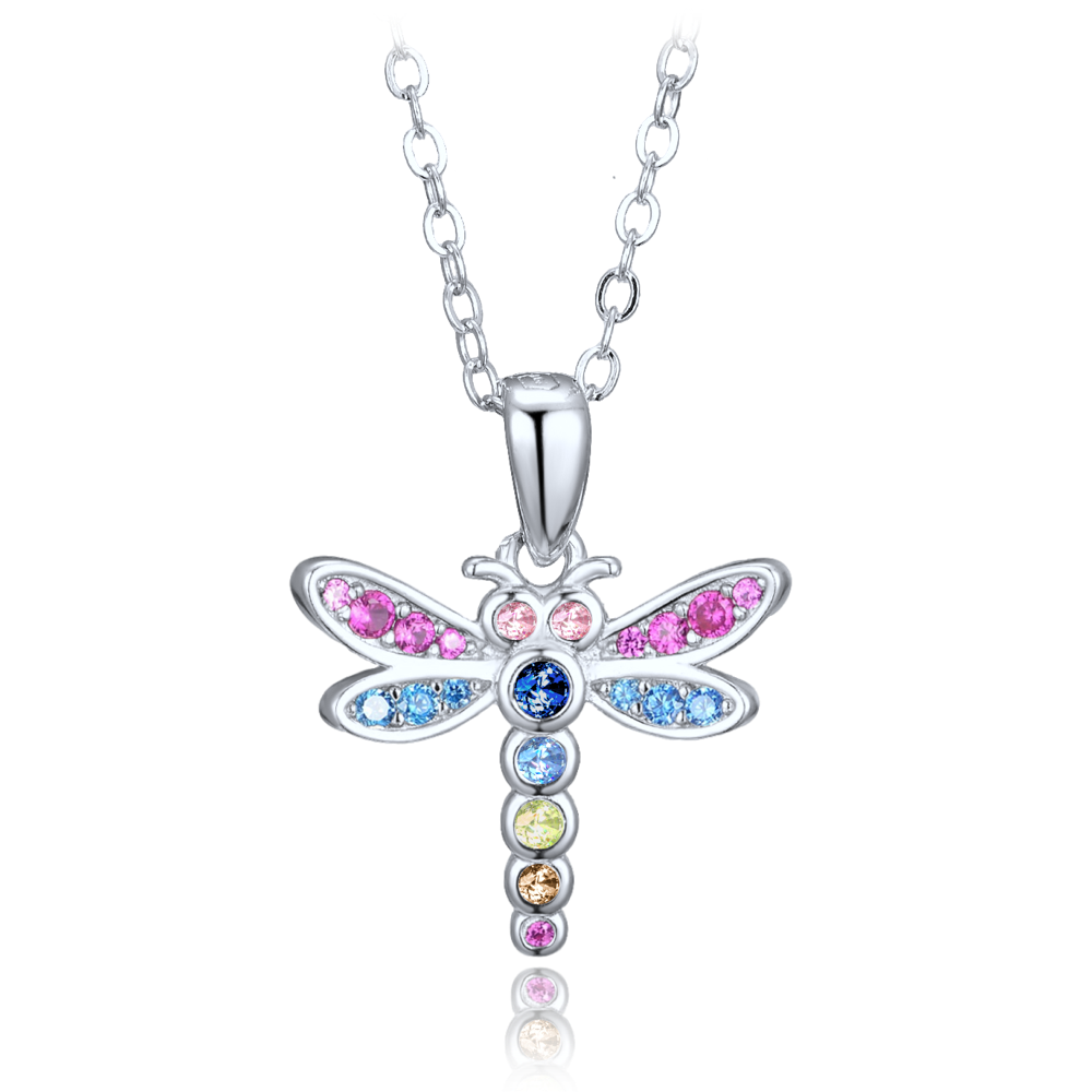 Stříbrné dětské náušnice MINET jsou vyrobeny z pravého rhodiovaného stříbra Ag 925/1000, které si dlouho udrží svou barvu i lesk. Náušnice mají motiv vážky a zdobí je růžové, modré, žluté a červené zirkony. Zapínání je řešeno patentem pro bezpečné nošení.