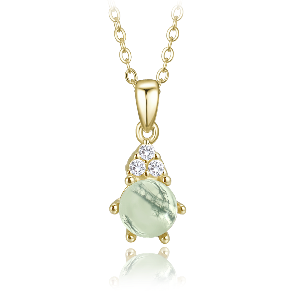 MINET Elegantní pozlacený stříbrný náhrdelník se světlým mechovým achátem a zirkonem