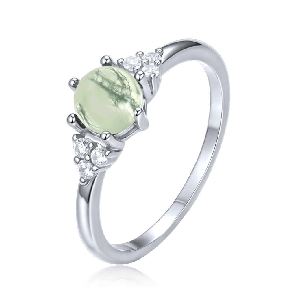 MINET Elegantní stříbrný prsten se světlým mechovým achátem a zirkonem vel. 57