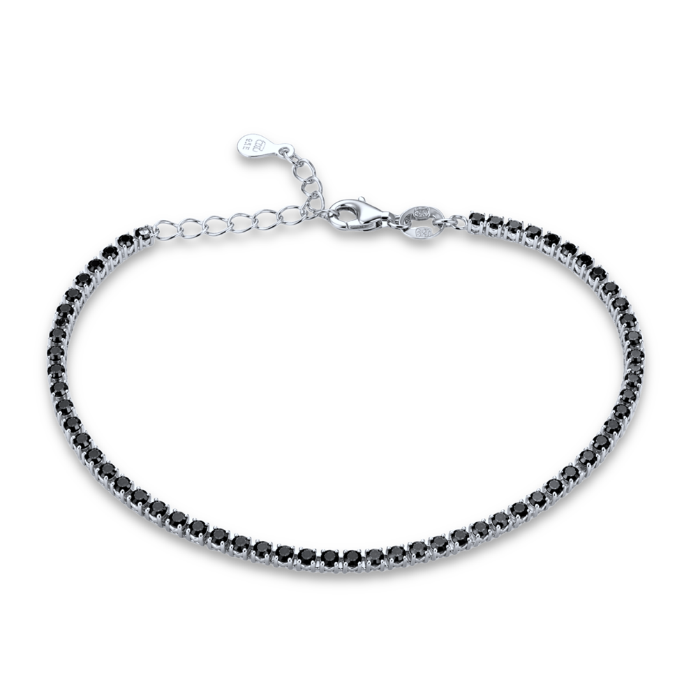 MINET Stříbrný tenisový náramek s černými zirkony