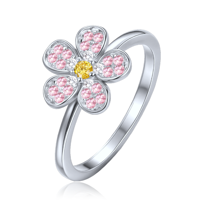 MINET Dětský stříbrný prsten kytička s růžovým, bílým a žlutým zirkonem vel. 49
