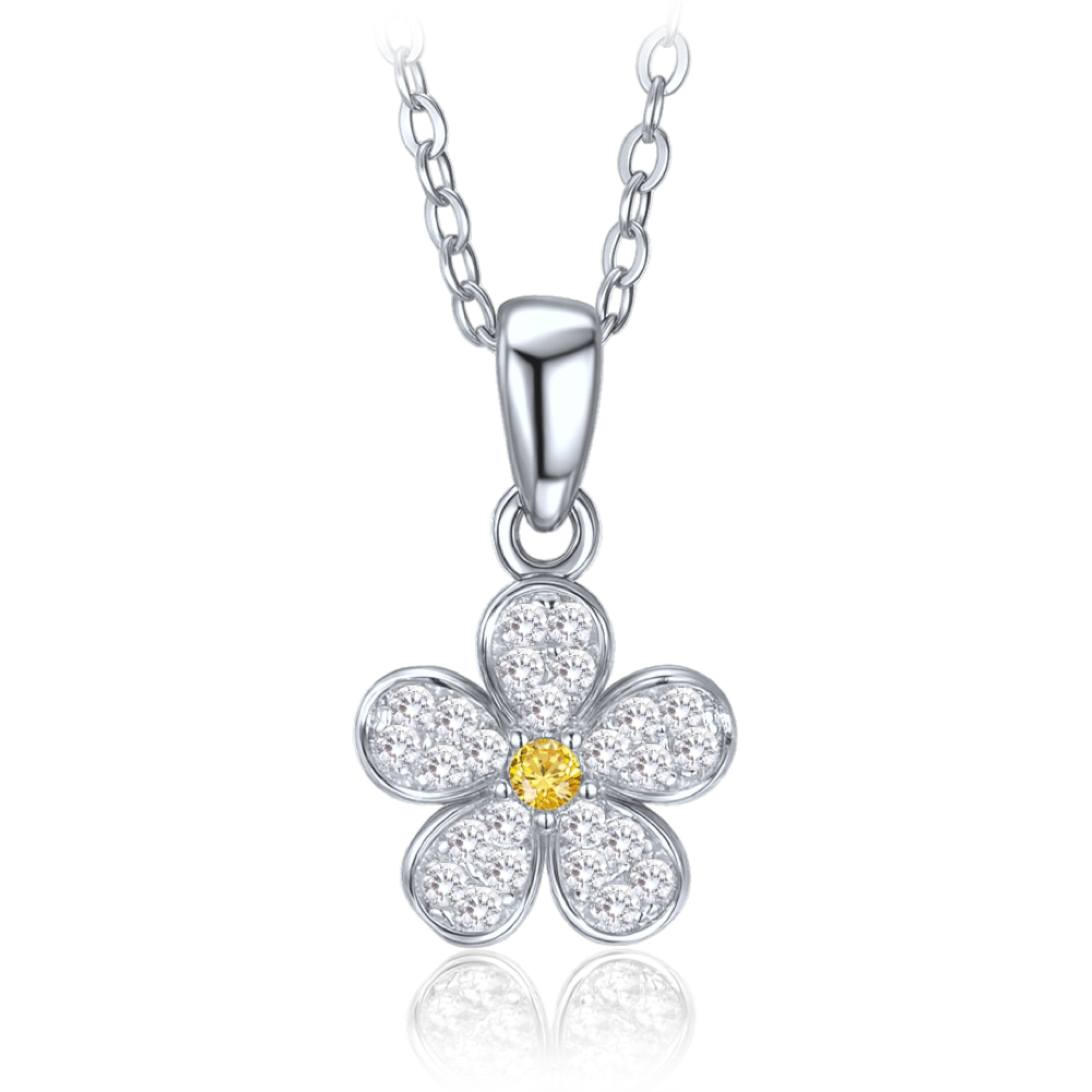 MINET Dětský stříbrný náhrdelník kytička se žlutým a bílým zirkonem