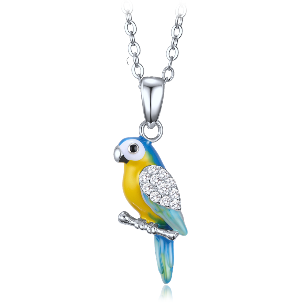MINET Stříbrný náhrdelník papoušek s bílým zirkonem