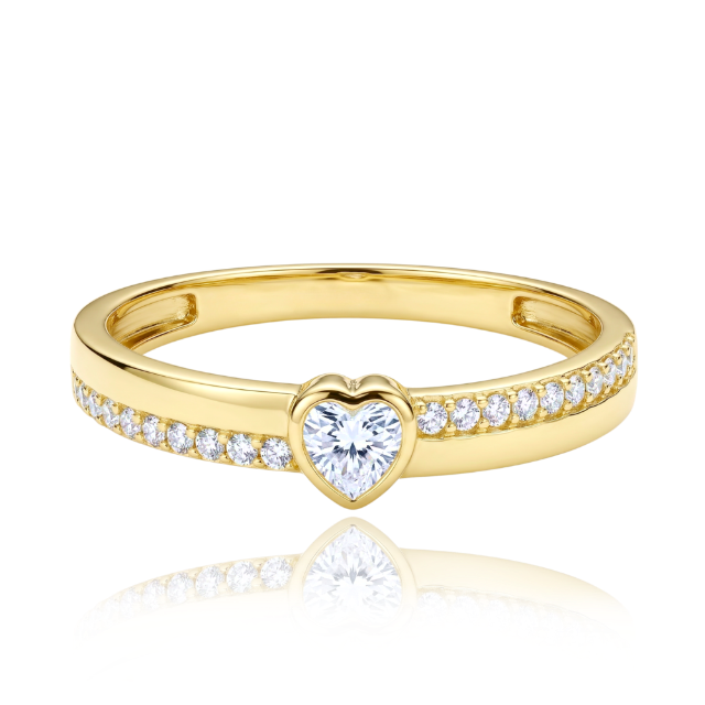 MINET Zlatý prsten srdíčko s bílými zirkony Au 585/1000 vel. 57 - 1,35g