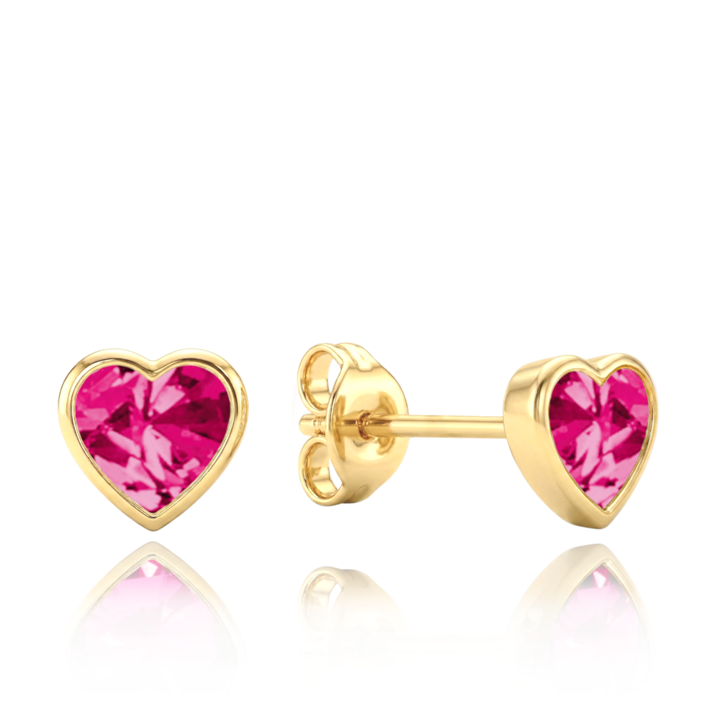 MINET Zlaté náušnice srdíčka s růžovými zirkony Au 585/1000 1,85g