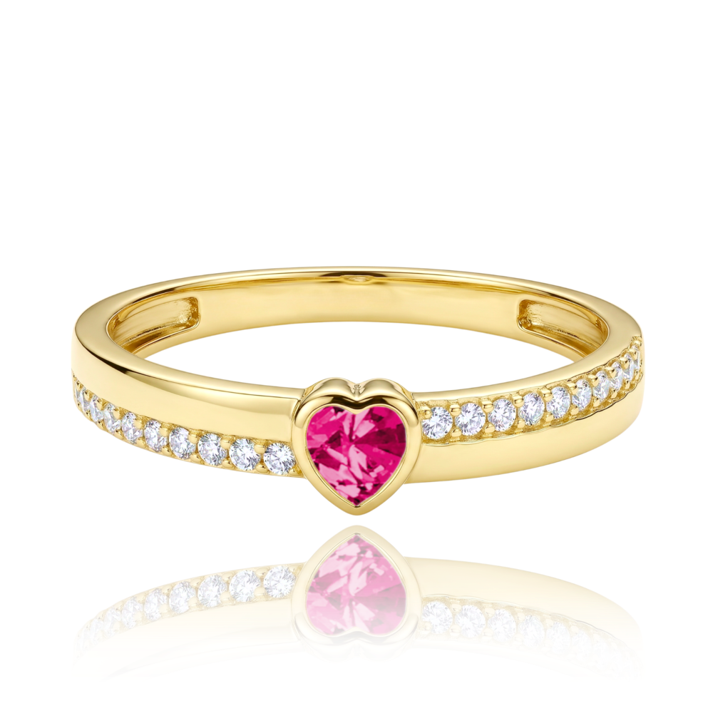 MINET Zlatý prsten srdíčko s růžovým a bílým zirkonem Au 585/1000 vel. 56 - 1,30g