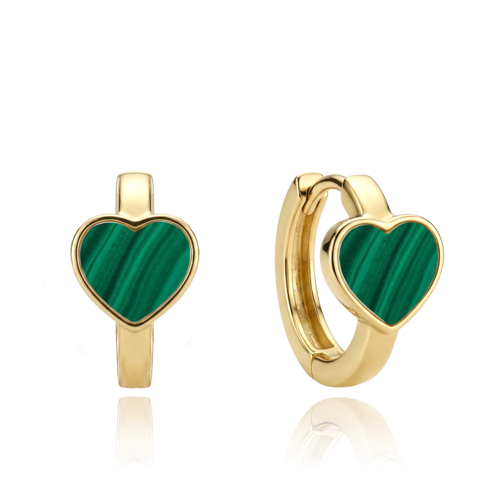 MINET Zlaté náušnice srdíčka se zeleným malachitem Au 585/1000 2,45g
