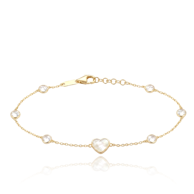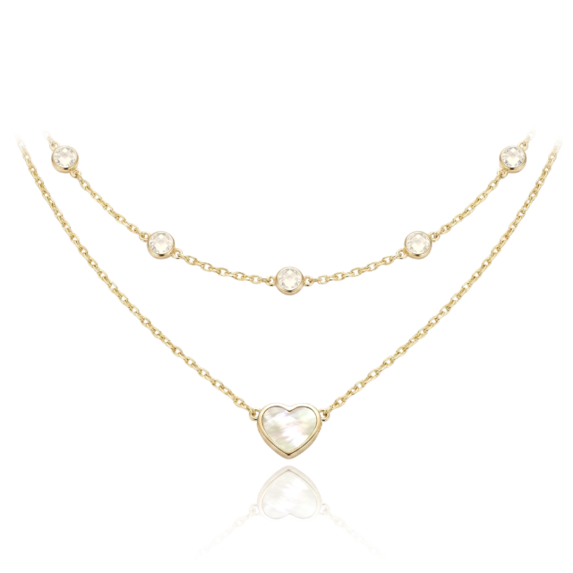 MINET Zlaté náušnice srdíčka s bílou perletí Au 585/1000 2,45g