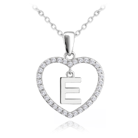 MINET Stříbrný náhrdelník písmeno v srdíčku "E" se zirkony
