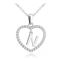MINET Stříbrný náhrdelník písmeno v srdíčku "N" se zirkony