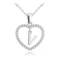 MINET Stříbrný náhrdelník písmeno v srdíčku "V" se zirkony