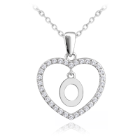 MINET Stříbrný náhrdelník písmeno v srdíčku "O" se zirkony