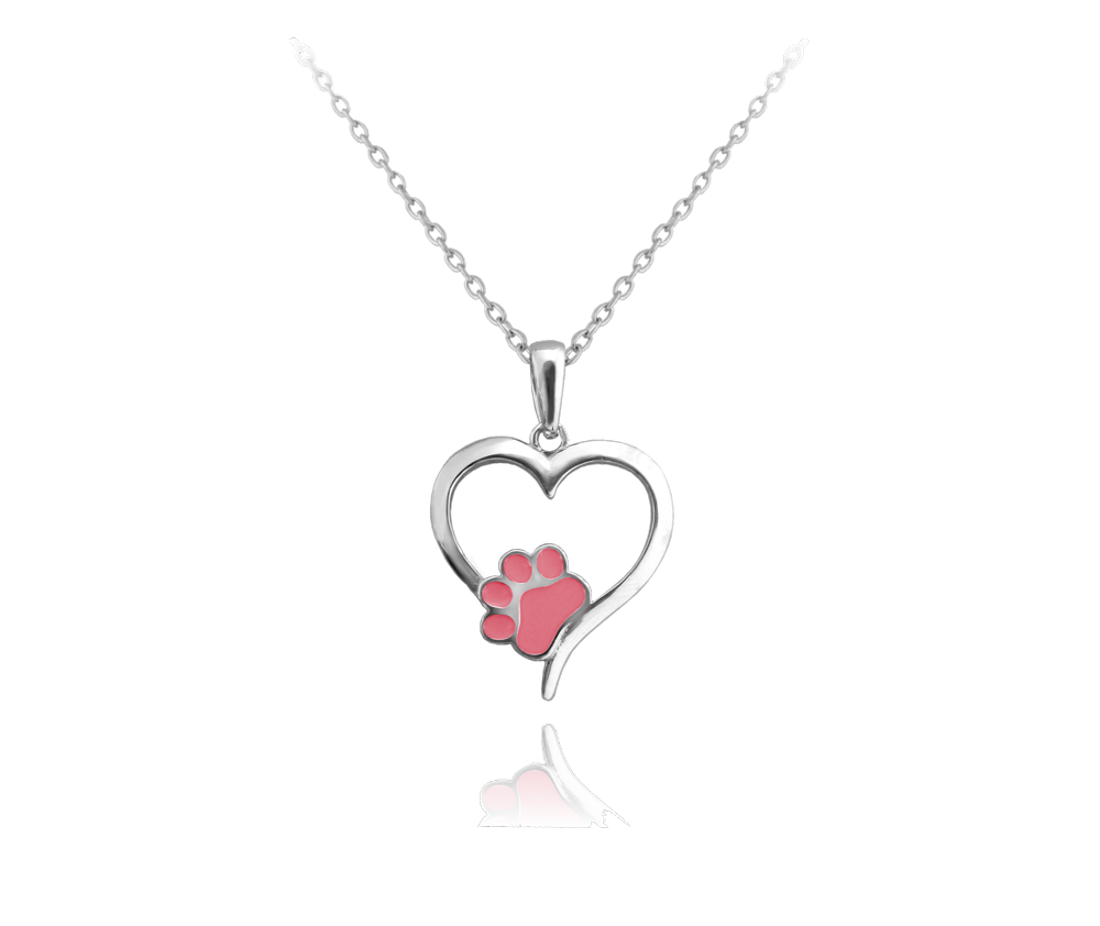 MINET Dětský stříbrný náhrdelník SRDCE s růžovou tlapkou