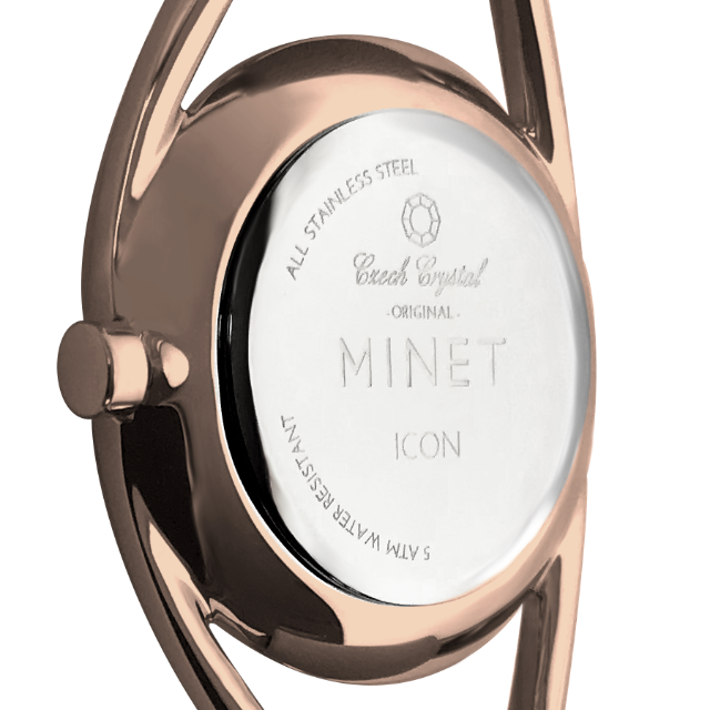 Elegantní hodinky české značky MINET se zlatým číselníkem a moderním ocelovým řemínkem milánského typu. Vyměnitelný řemínek se snadným systémem zkracování se přizpůsobí obvodu ruky. Hodinky jsou vyrobeny z hypoalergenní nerezové oceli.