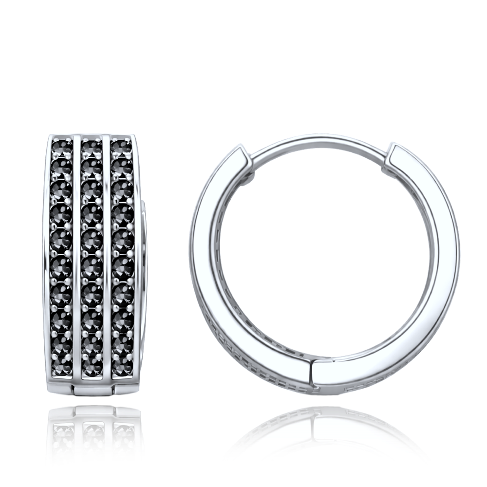 MINET Zlaté náušnice kroužky z bílého zlata s černými zirkony Au 585/1000 2,50g