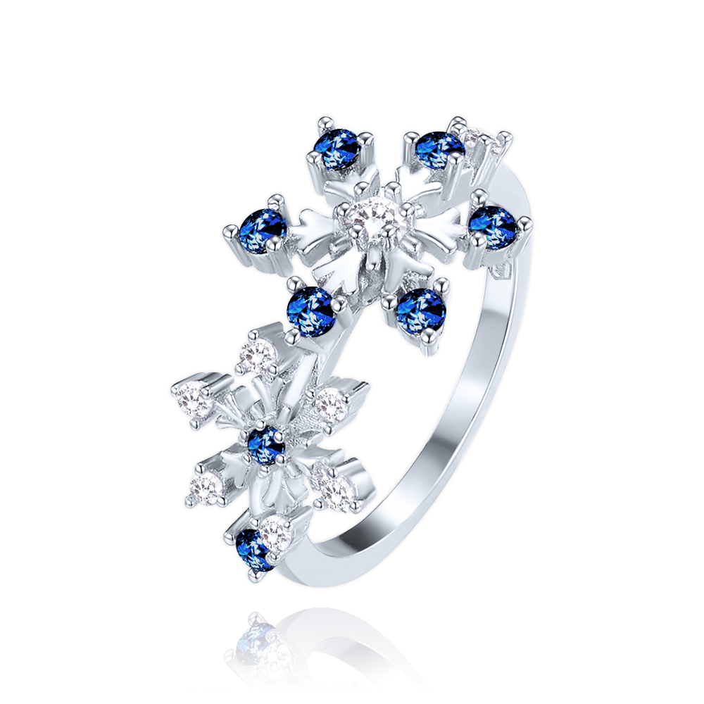 MINET Stříbrný prsten sněhová vločka s bílými a modrými zirkony vel. 51