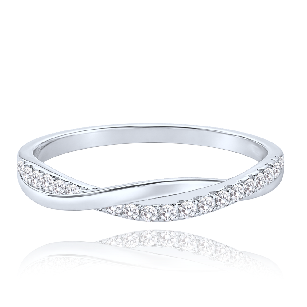 MINET Stříbrný zapletený prsten s bílými zirkony