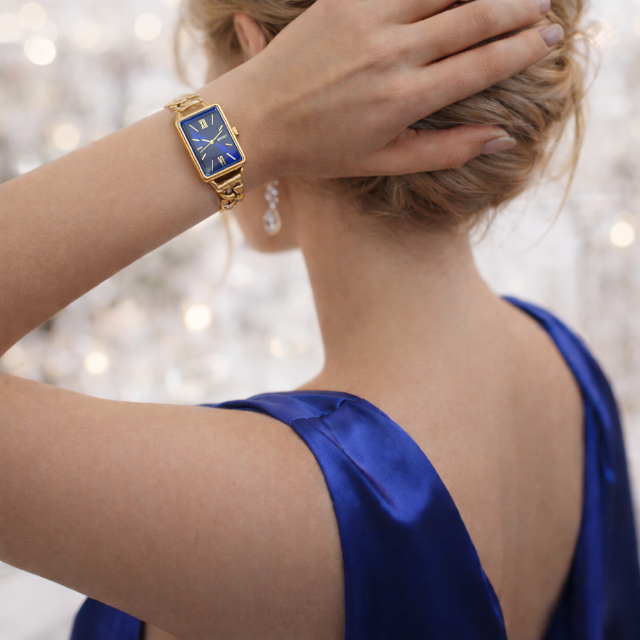 MINET Zlato-modré dámské hodinky GRACE s ocelovým řemínkem