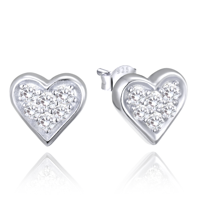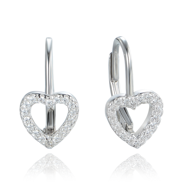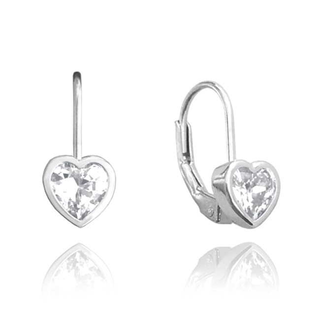 MINET Dětské stříbrné náušnice SRDÍČKA s bílými zirkony
