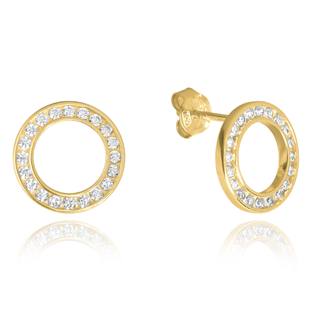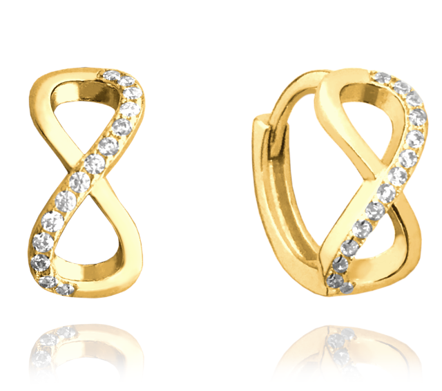 MINET Pozlacené dětské stříbrné náušnice SRDÍČKA s bílými zirkony